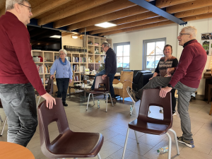 Het credo is niet voor niets ‘Use it or lose it. “Bovendien is het heel gezellig om met een groep iets aan beweging te doen, zeker nu we nog niet de tuin in kunnen of lekker buiten kunnen jeu-de-boulen”.