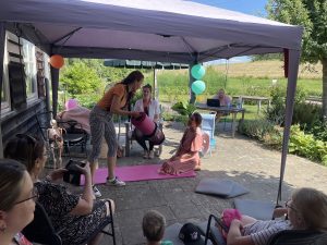 “gluren bij de buren”: een familievoorstelling voor jong en oud. Op zondag 29 juni a.s. was de tuin van De Minkhof in Bemmel het decor voor een van de voorstellingen van Gluren bij de Buren. In de tuin van De Minkhof werd  een theatervoorstelling gegeven speciaal voor kinderen.