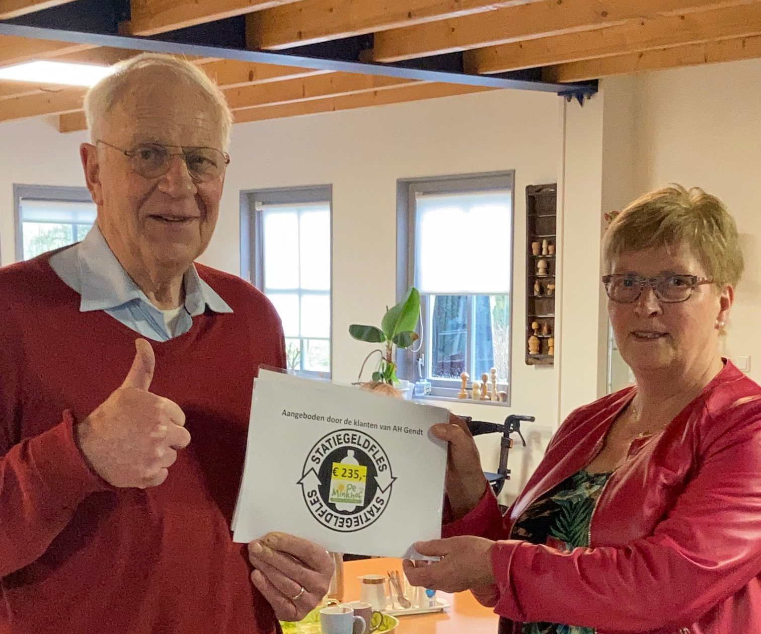 Klanten van AH in Gendt hebben in de maanden december en januari hun statiegeld bonnetje kunnen doneren voor De Minkhof.