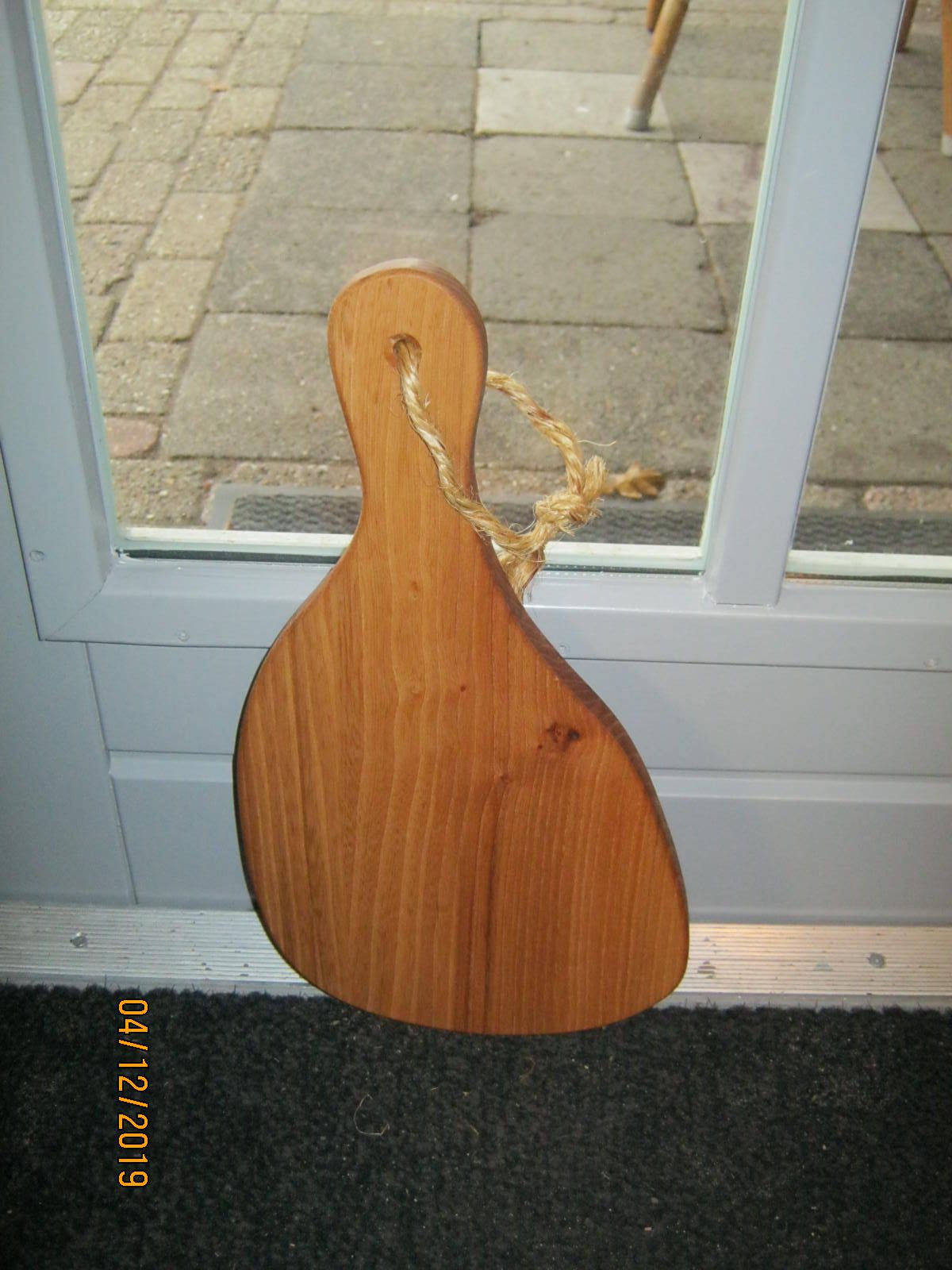 Blankhouten eivormige snijplank. Makkelijk voor in de keuken en/of op tafel! maximale afmeting: ongeveer 37 cm x 20 cm.